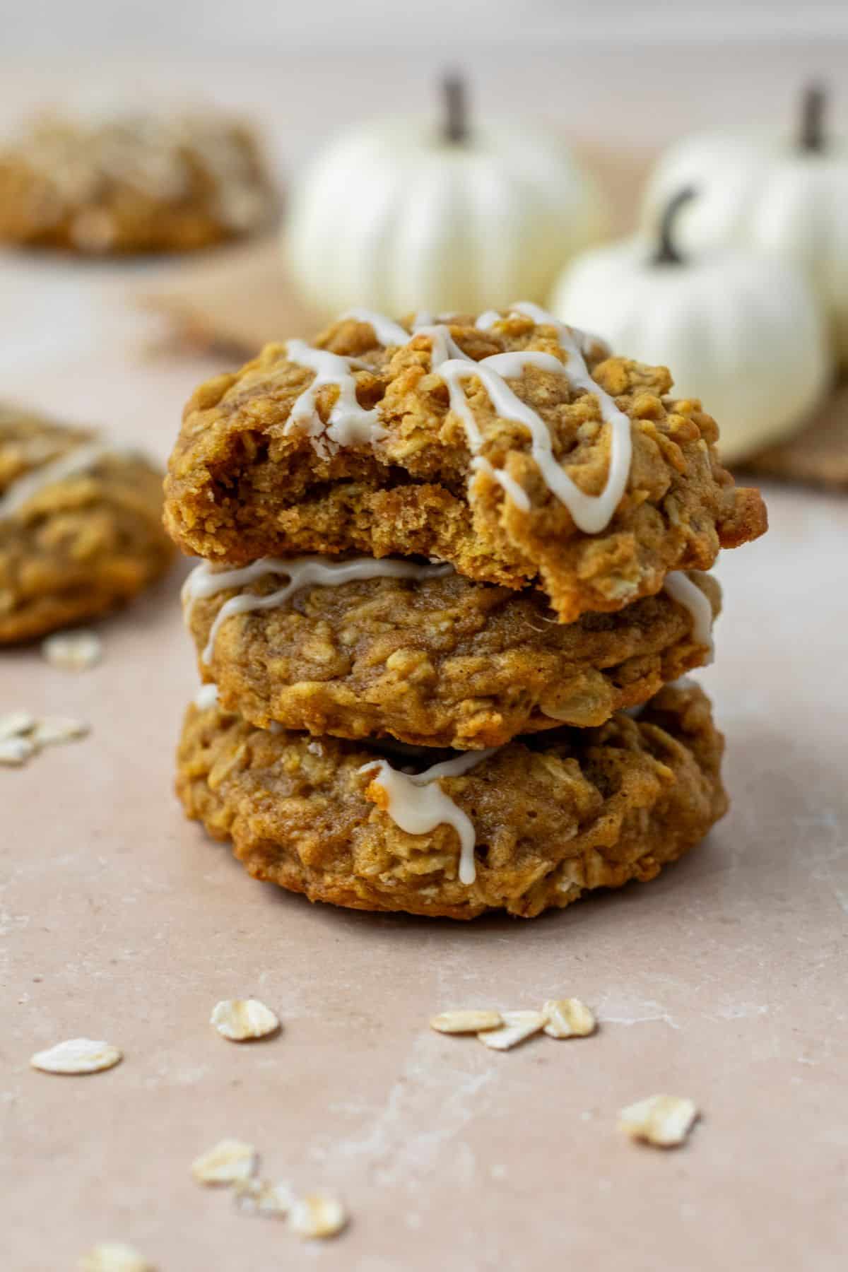 The maple icing that's drizzled over the top really brings all of the fall flavors together inside of these cookies!