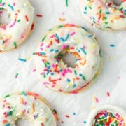 These funfetti donuts are cake donuts that have been filled with rainbow sprinkles and are topped with a vanilla glaze. They're super easy to make and would make any birthday morning special!
