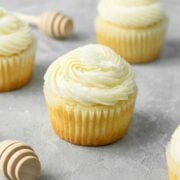 These honey cupcakes are soft, moist, and topped with a creamy honey frosting. If you love the sweet flavor of honey, you'll want to try these cupcakes!