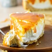 This is the bestno bake caramel cheesecake recipe because it takes just 30 minutes to prep and you don't even have to turn on your oven. It has a buttery graham cracker crust, a no bake cheesecake filling, and is topped with my homemade salted caramel sauce. It's a perfect Thanksgiving or holiday dessert!